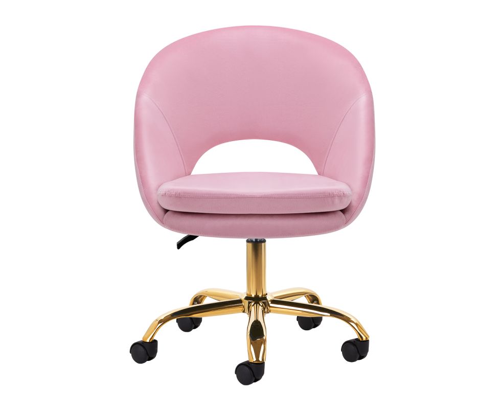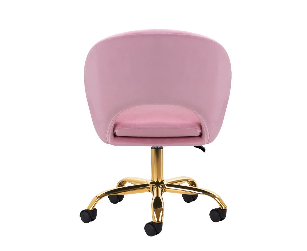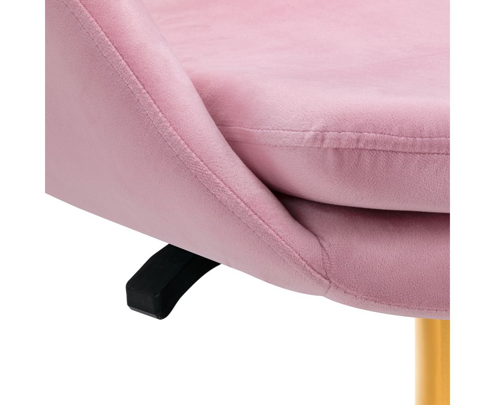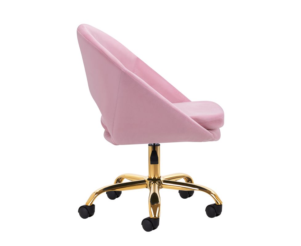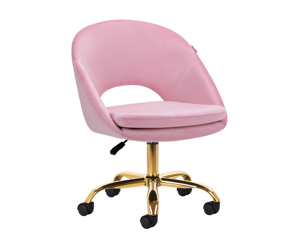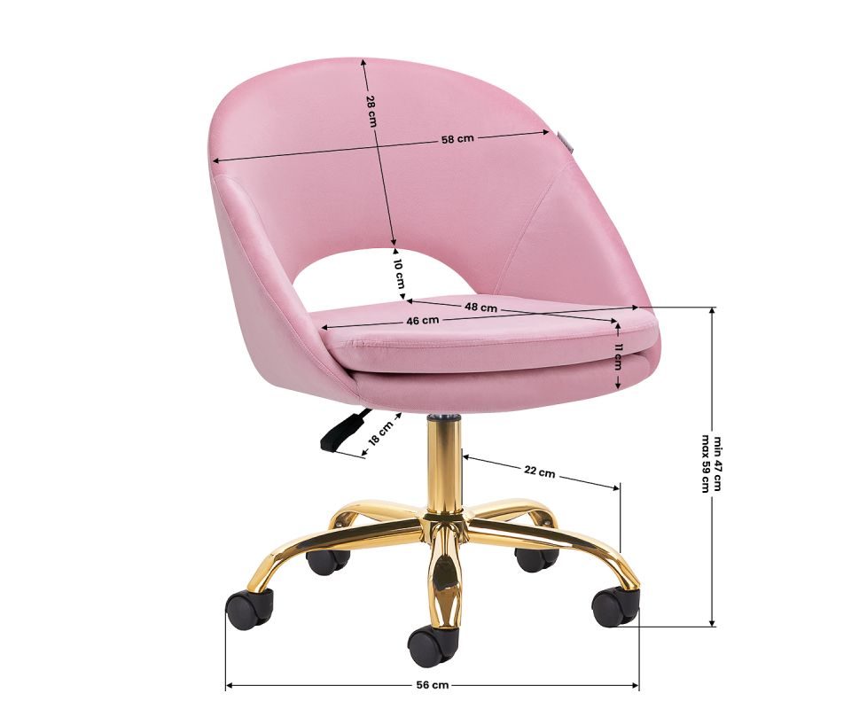 The simple finish makes the furniture eye-catching. The pleasant-to-the-touch, velvet upholstery in shades of pink gives it a unique character. The base in shades of gold adds elegance, perfectly matching the velvet, and the functional wheels ensure mobility, making it easier to move the chair around the salon while working. Aesthetics of workmanship, comfort of use and ergonomically profiled backrest make the chair meet the requirements of even the most demanding users.
