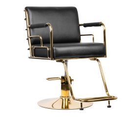 Stylish barber chair. Very comfortable, ideally suited to the interiors of elegant living rooms. Adjustable in the vertical plane. Very stable and solid. The upholstery is made of the highest quality black eco-leather. The elegance of this armchair is complemented by the golden finish of the...