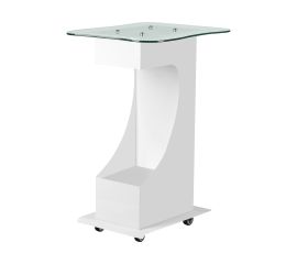 functional, metal and glass table with rubber wheels with a blocking function. Perfect as a table for a cosmetic device. it has a stable shelf for the device and thanks to the wheel, the table is mobile and easy to move. the piece of furniture provides convenience and comfort during work....