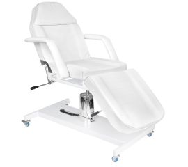Basic 210 hydraulic cosmetic chair, white, on wheels. European version! swivel armchair with a lock, hydraulically raised and lowered with a hole in the headrest, perfect for cosmetics, make-up and massage. it has removable armrests and a plug in the headrest. Easily washable seat cover,...