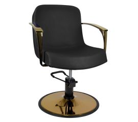 a modern hairdressing chair with a unique design and extraordinary quality. metal elements sparkle with a gold color, enhancing the sense of luxury. very comfortable, ideally suited to modern salons. specially contoured to provide the client with a comfortable position during the treatment....