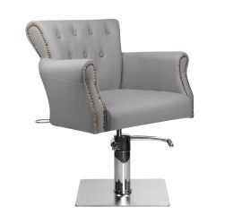stylish hairdressing chair.  very comfortable, ideally suited to the interiors of elegant living rooms.  adjustable in the vertical plane. very stable and solid. upholstery made of the highest quality gray eco-leather. the elegance of this armchair is complemented by a square base...