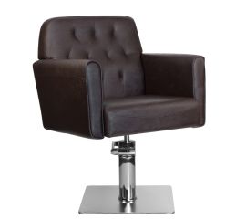 stylish hairdressing chair.  very comfortable, ideally suited to the interiors of elegant living rooms.  adjustable in the vertical plane. very stable and solid. upholstery made of the highest quality brown eco-leather. the elegance of this armchair is complemented by a square base...