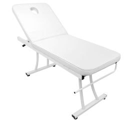 2 piece universal lounger. based on face slots manually blinded. easy to clean white PVC upholstery.  the bed is equipped with a paper roll holder. maximum load 150kg dimensions 184*63*77cm packaging dimensions...