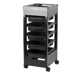 black hairdressing assistant with 2 lockable key shutters, 4 litter boxes and 15 compartments for hairdressing assortment. stable construction will ensure long-term use. table mounted on wheels, thanks to which the tools will always be at hand.  helper with parts for self-assembly....