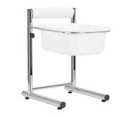is used to soak the feet before the pedicure. it is very comfortable for the client and for the pedicurist, it has a smooth adjustable height of the bowl. can be adjusted to any height of the chair. on the back of the paddling pool there is a soft upholstery where the client can rest her leg....
