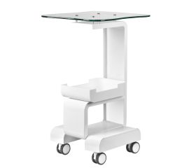 functional, metal and glass table with rubber wheels with a blocking function. Perfect as a table for a cosmetic device. it has a stable shelf for the device and another shelf for accessories, and thanks to the wheel, the table is mobile and easy to move. the piece of furniture provides...