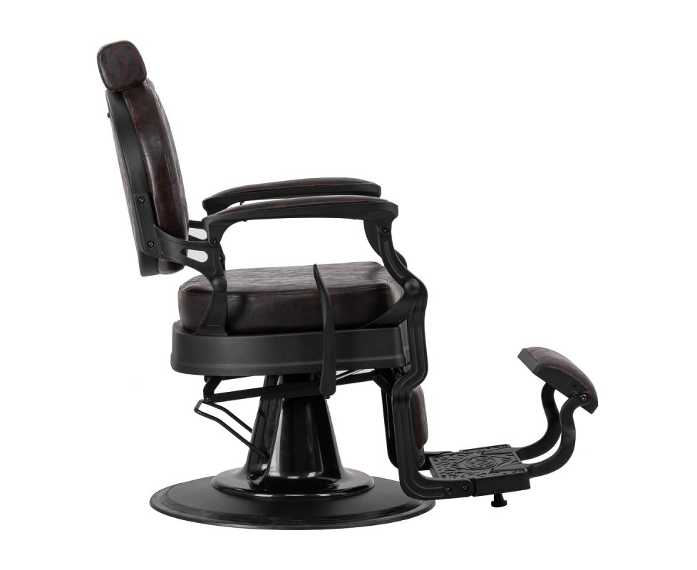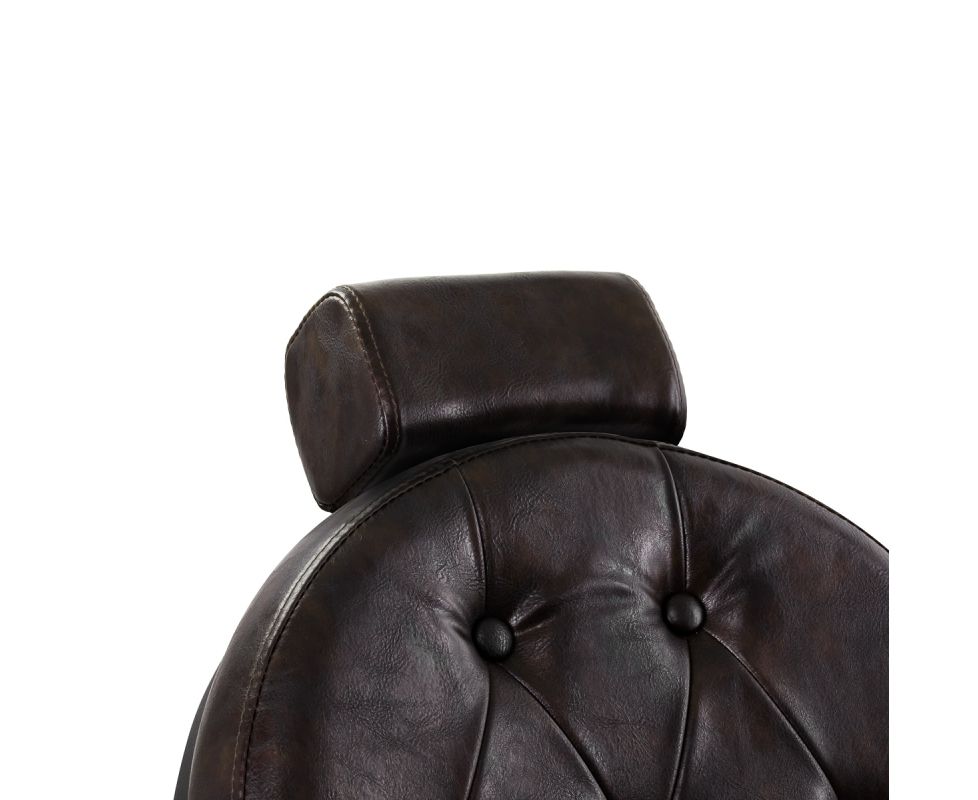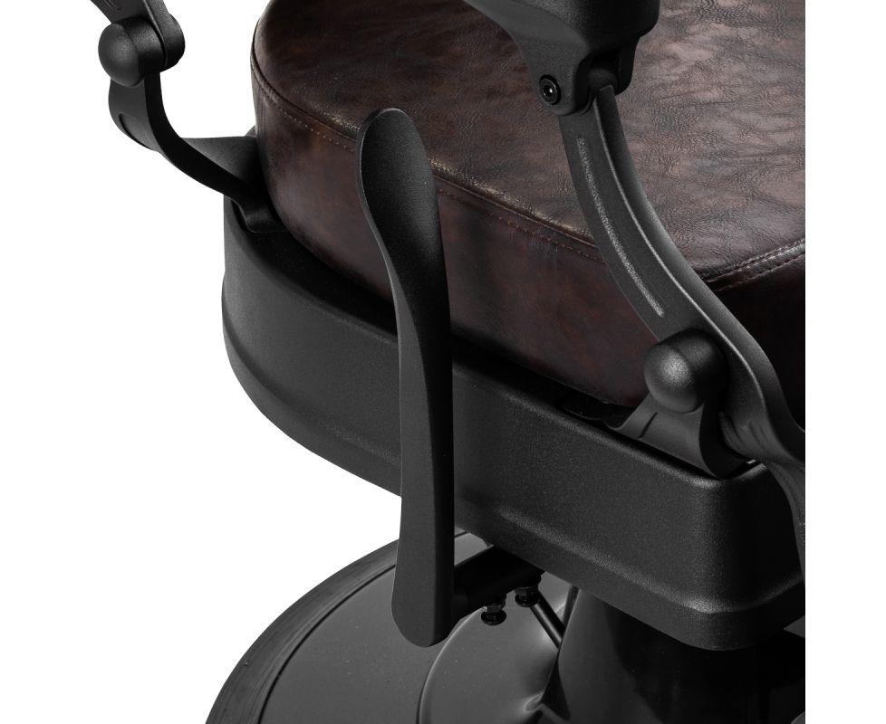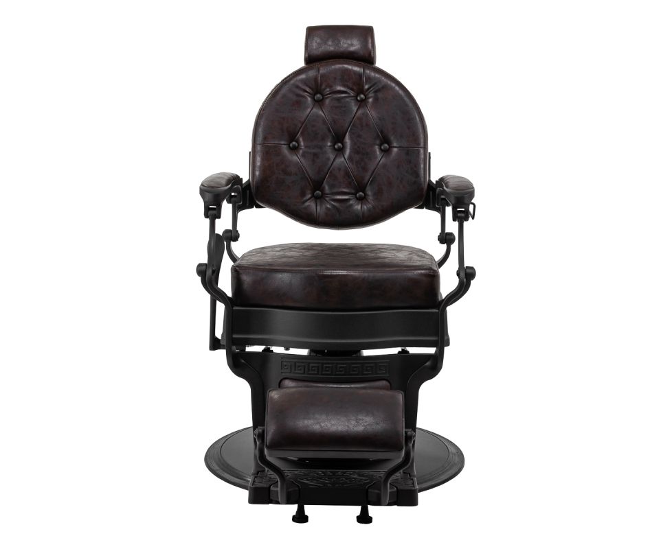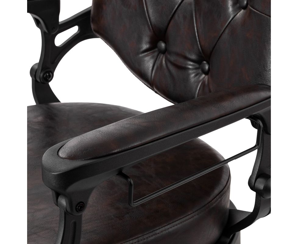 The solid construction of the base ensures stability and high comfort of use. The seat filling is made of durable, deformation-resistant foam and the upholstery is made of pleasant-to-touch synthetic leather with a semi-matte finish, ensuring the durability of the furniture and its comfortable use for a long time. They also make the equipment resistant to moisture, durable and easy to clean. The covering in shades of brown with quilting and decorative buttons gives it a unique character. The chair with a characteristic design, referring to the vintage style, perfectly fits the atmosphere of barbershops, emphasizing their unique atmosphere.