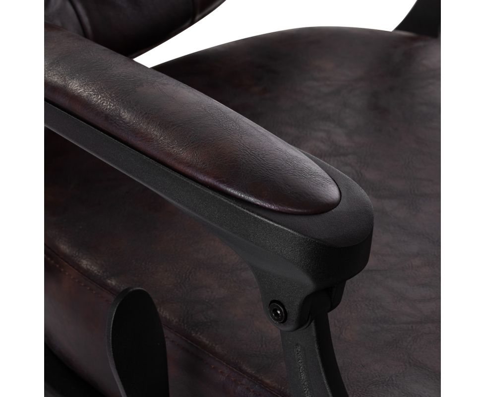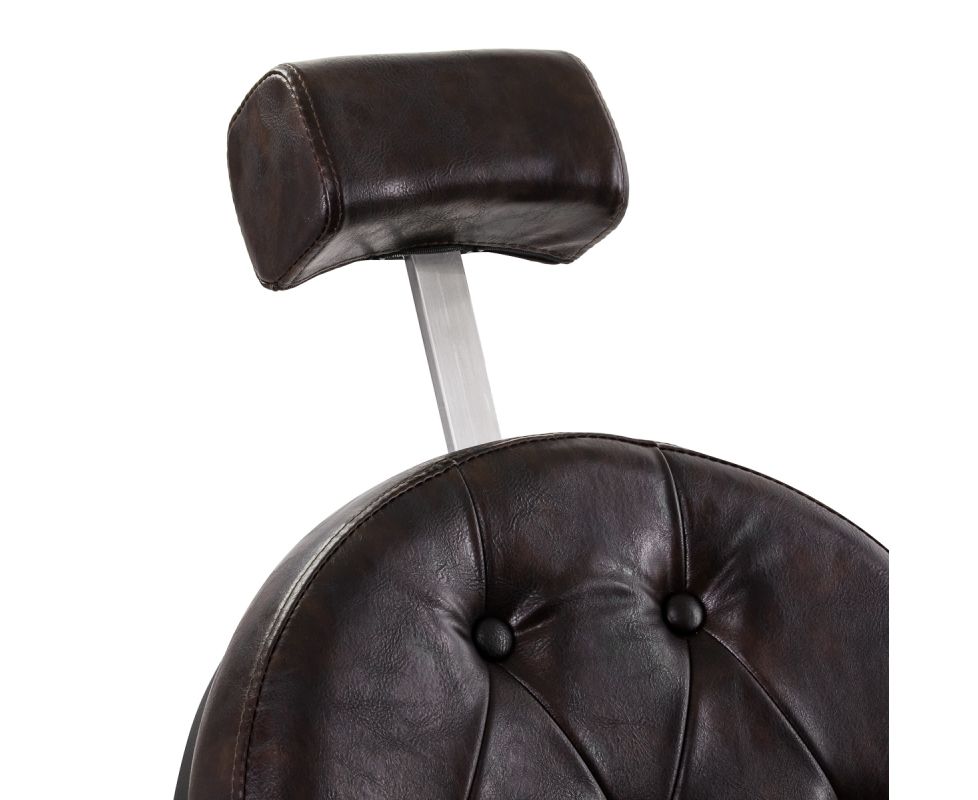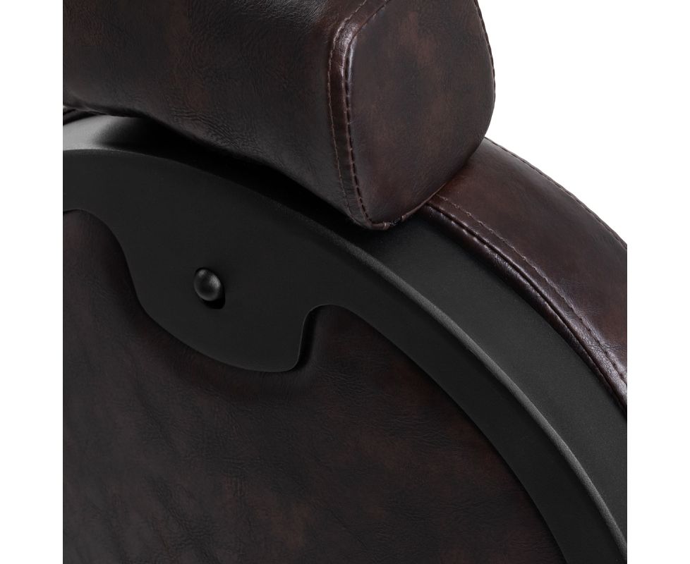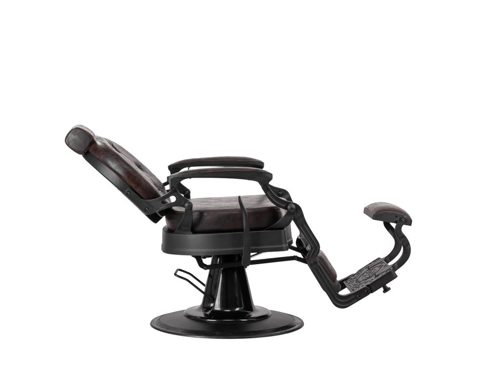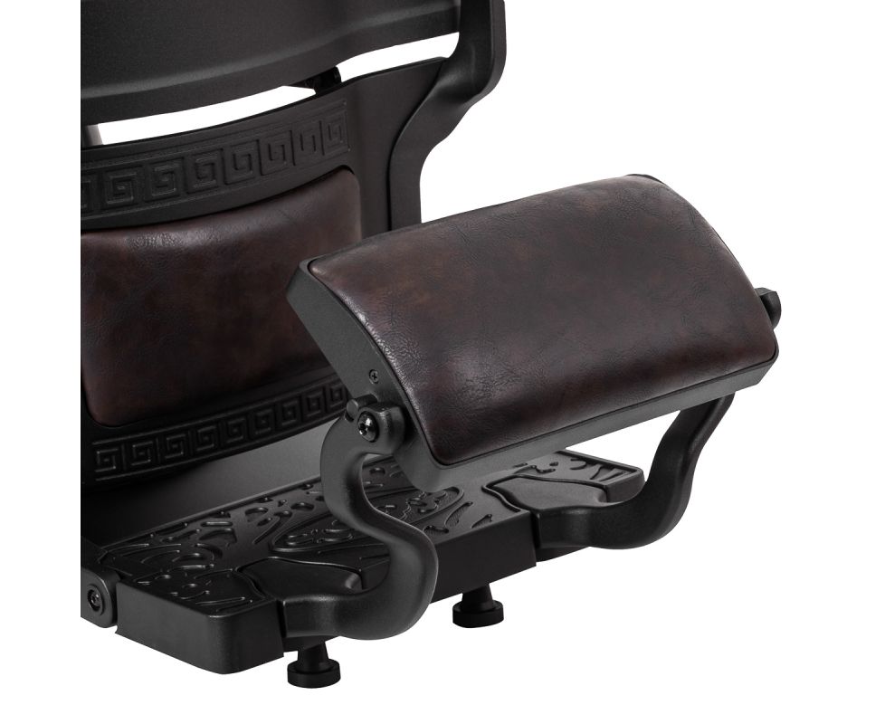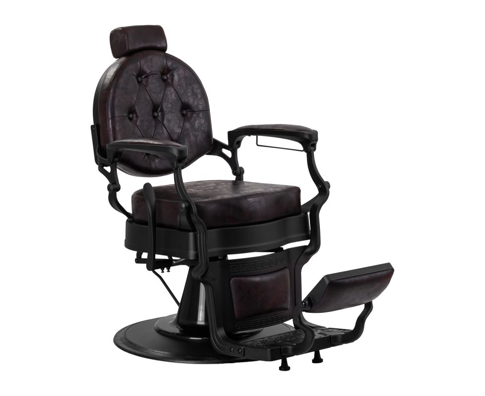 The solid construction of the base ensures stability and high comfort of use. The seat filling is made of durable, deformation-resistant foam and the upholstery is made of pleasant-to-touch synthetic leather with a semi-matte finish, ensuring the durability of the furniture and its comfortable use for a long time. They also make the equipment resistant to moisture, durable and easy to clean. The covering in shades of brown with quilting and decorative buttons gives it a unique character. The chair with a characteristic design, referring to the vintage style, perfectly fits the atmosphere of barbershops, emphasizing their unique atmosphere.