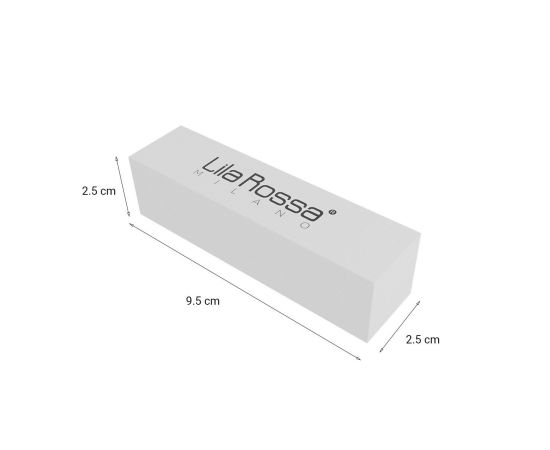 Il buffer Lila Rossa bianco a 4 lati e a grana fine è della dimensione perfetta per entrare nelle pareti laterali dell'unghia e vicino alla cuticola senza provocare abrasioni.