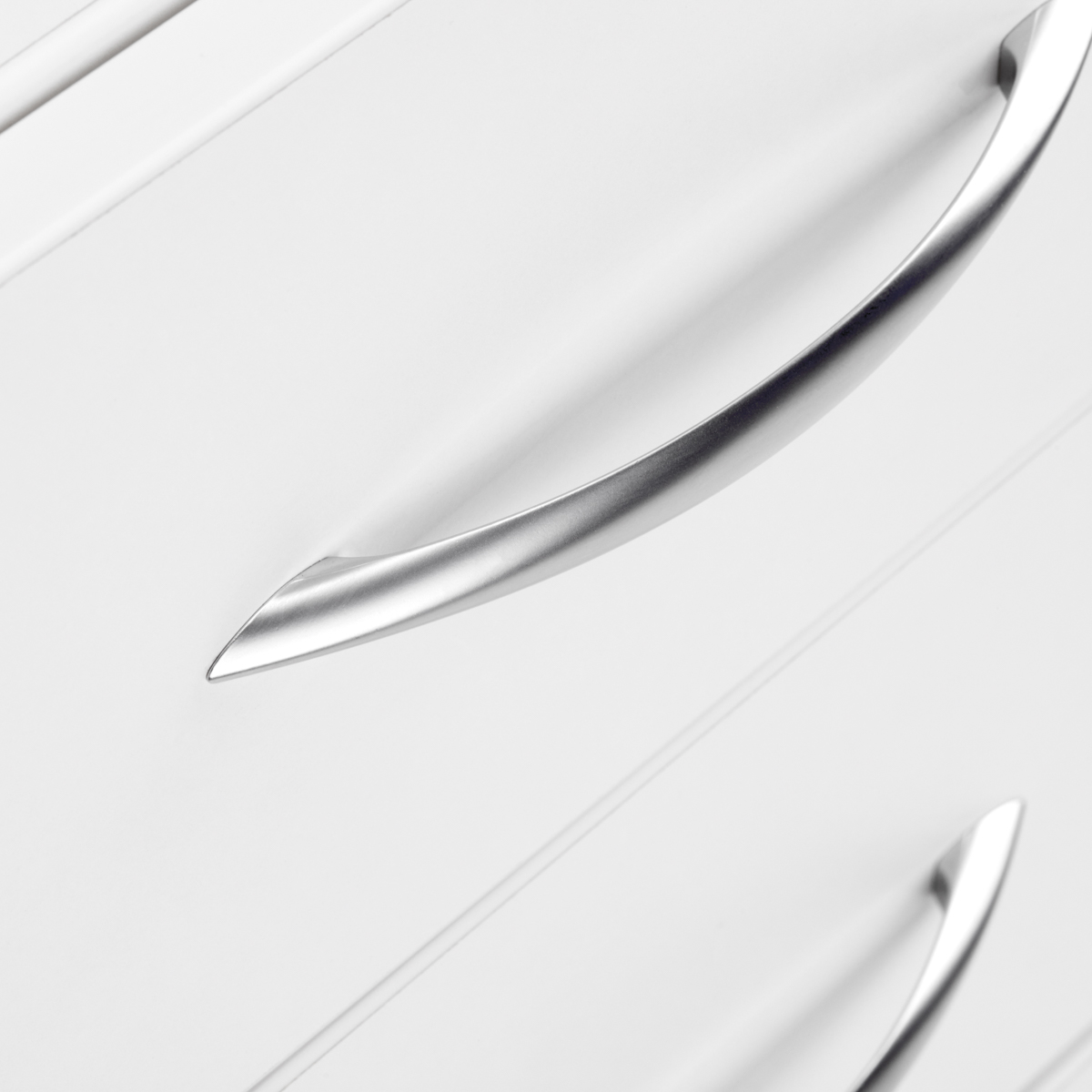 cabinet with 3 drawers on white roller guides. the cabinet has wheels installed, which allows it to be easily moved across the floor.