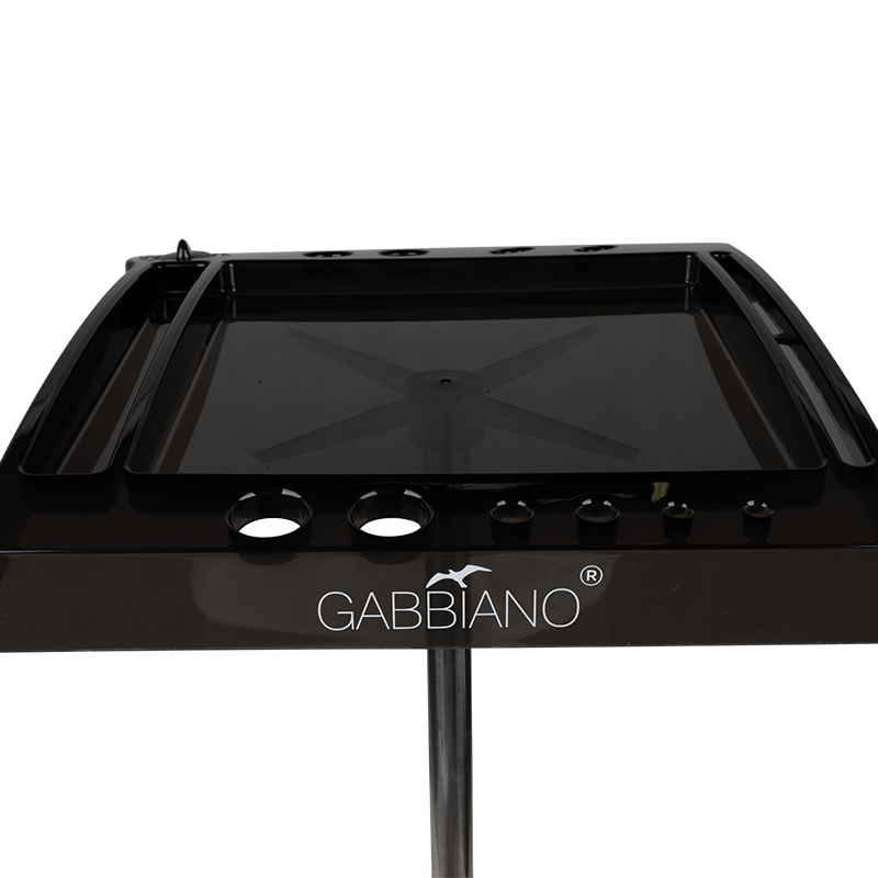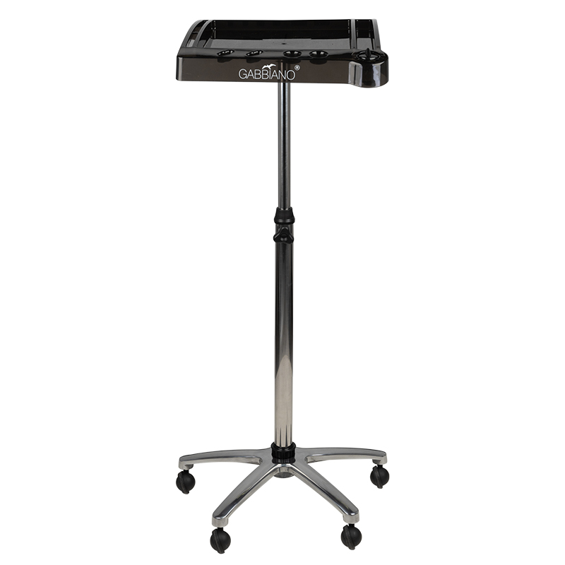 black hairdressing assistant. stable construction will ensure long-term use. table mounted on wheels, thanks to which the tools will always be at hand.