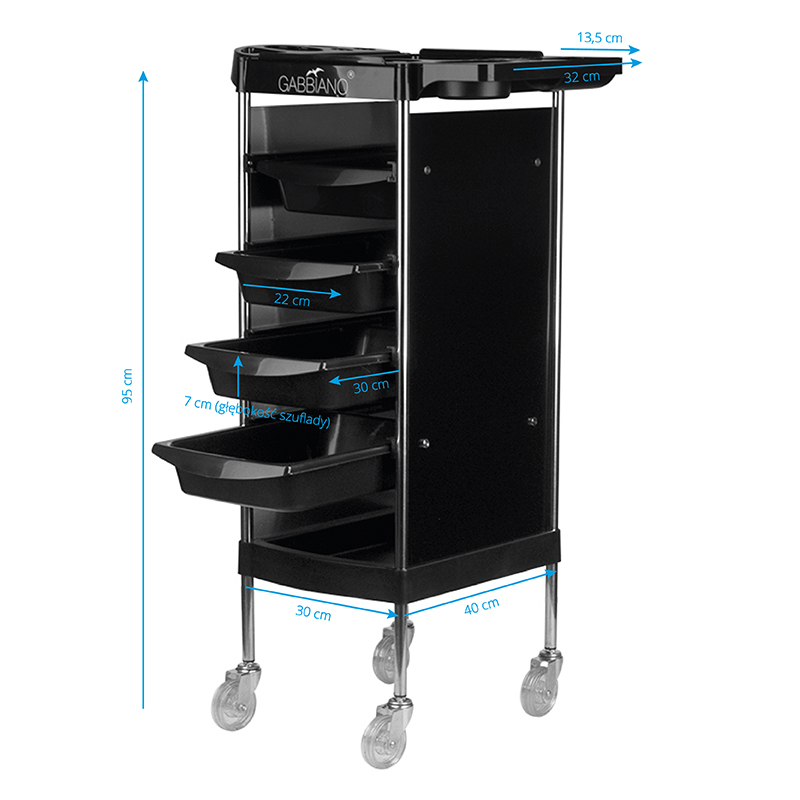 gabbiano hairdressing helper is a high-quality piece of furniture. It is made of durable ABS material with a steel frame structure ensuring high stability and durability. the whole is mounted on very durable, ball-bearing, rubber wheels. classic black color will perfectly match the decor of your living room!