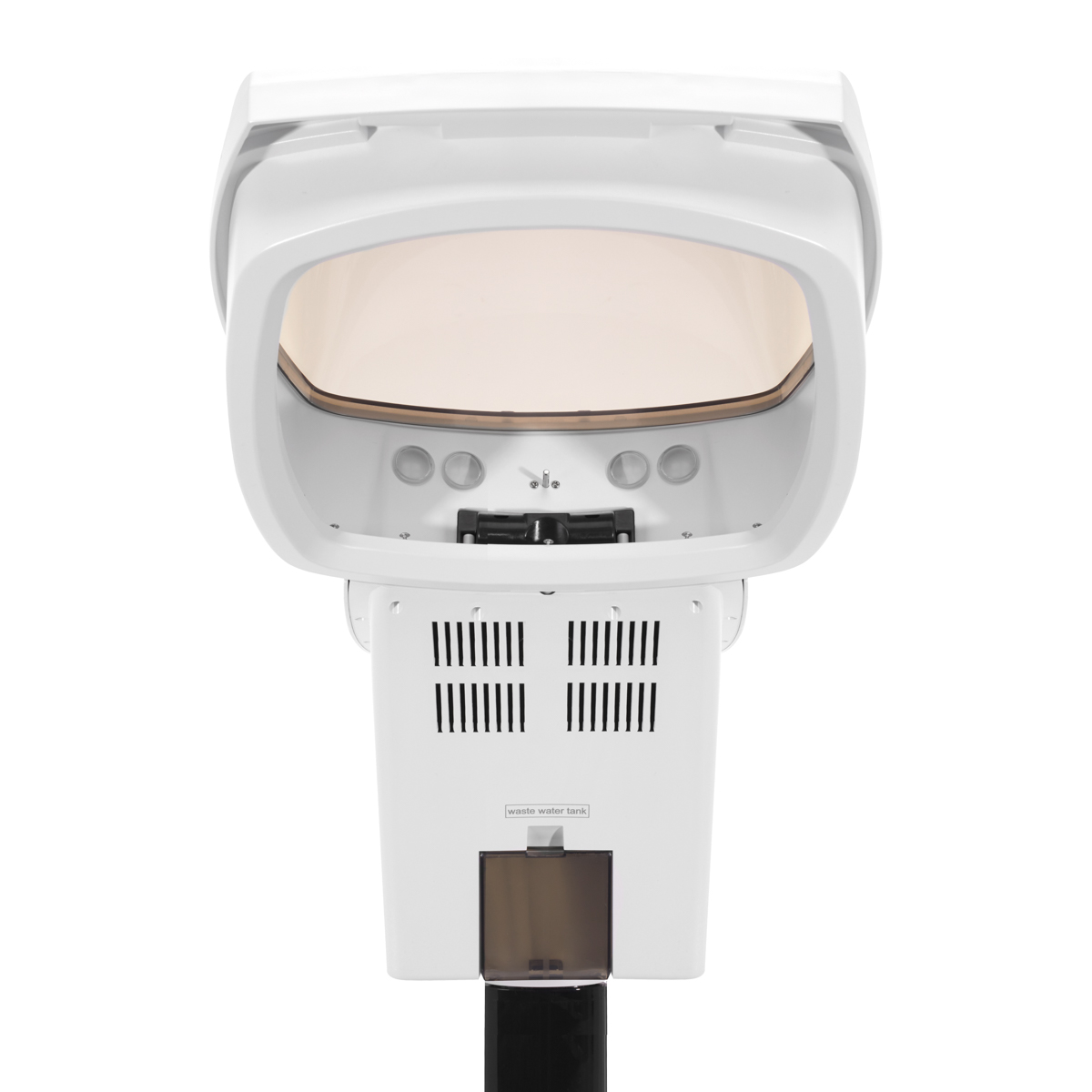 The easy-to-use device uses water vapor, which facilitates the absorption of conditioning substances and makes the hair soft and highly moisturized. The heat released from the water vapor stimulates microcirculation of the scalp and facilitates the transport of essential nutrients. This increases the comfort and satisfaction of the client undergoing treatment. The use of such a solution also has a positive effect on the scalp, and the hair becomes stronger and has less tendency to fall out. The device is equipped with a tank with a capacity of almost two liters for clean water and a smaller collecting container for water that condenses during treatments. The sauna is equipped with a system that informs about the lack of water in the tank with a message on the screen and a characteristic sound. The set also includes a special cap with a drawstring that makes it easier to direct steam to the hair.