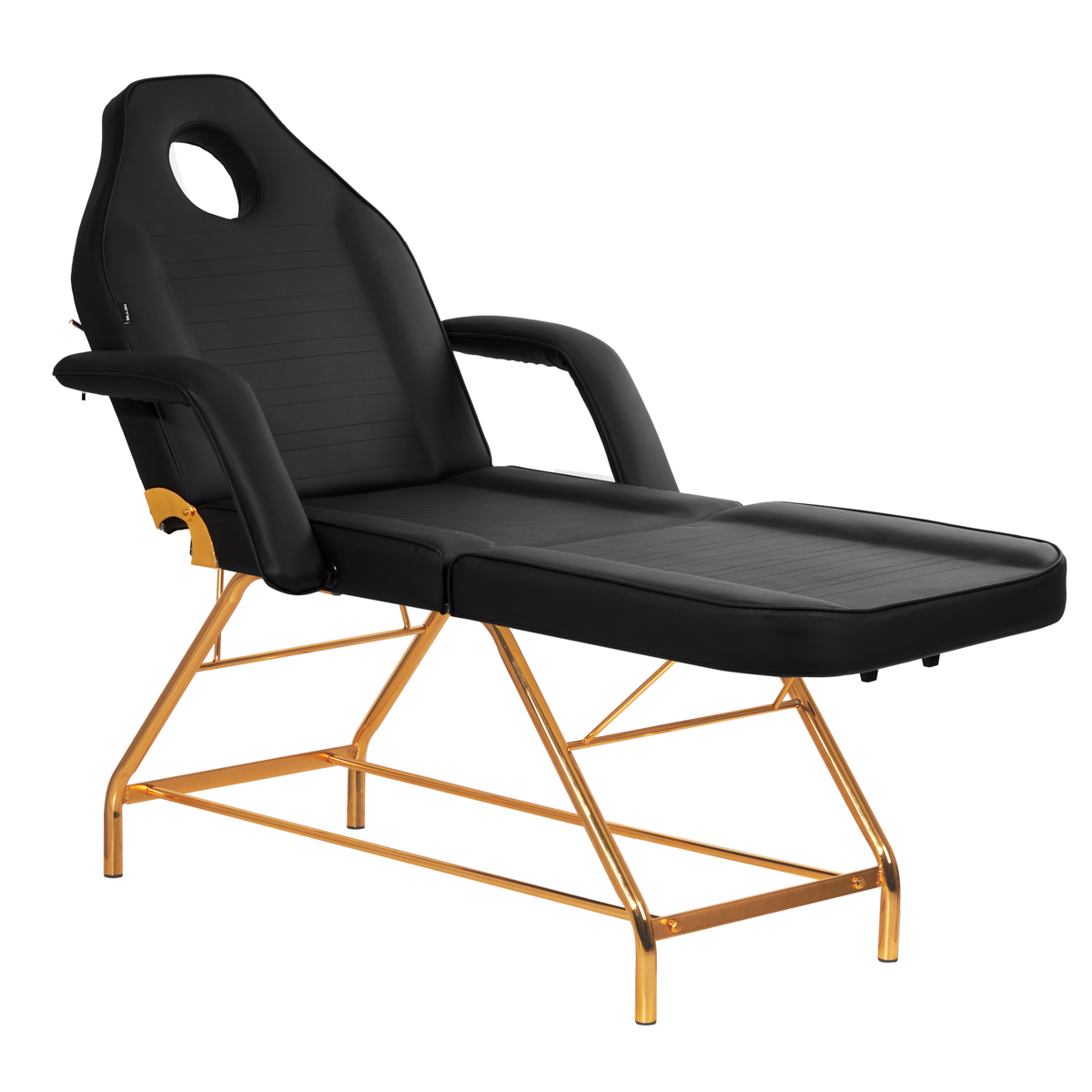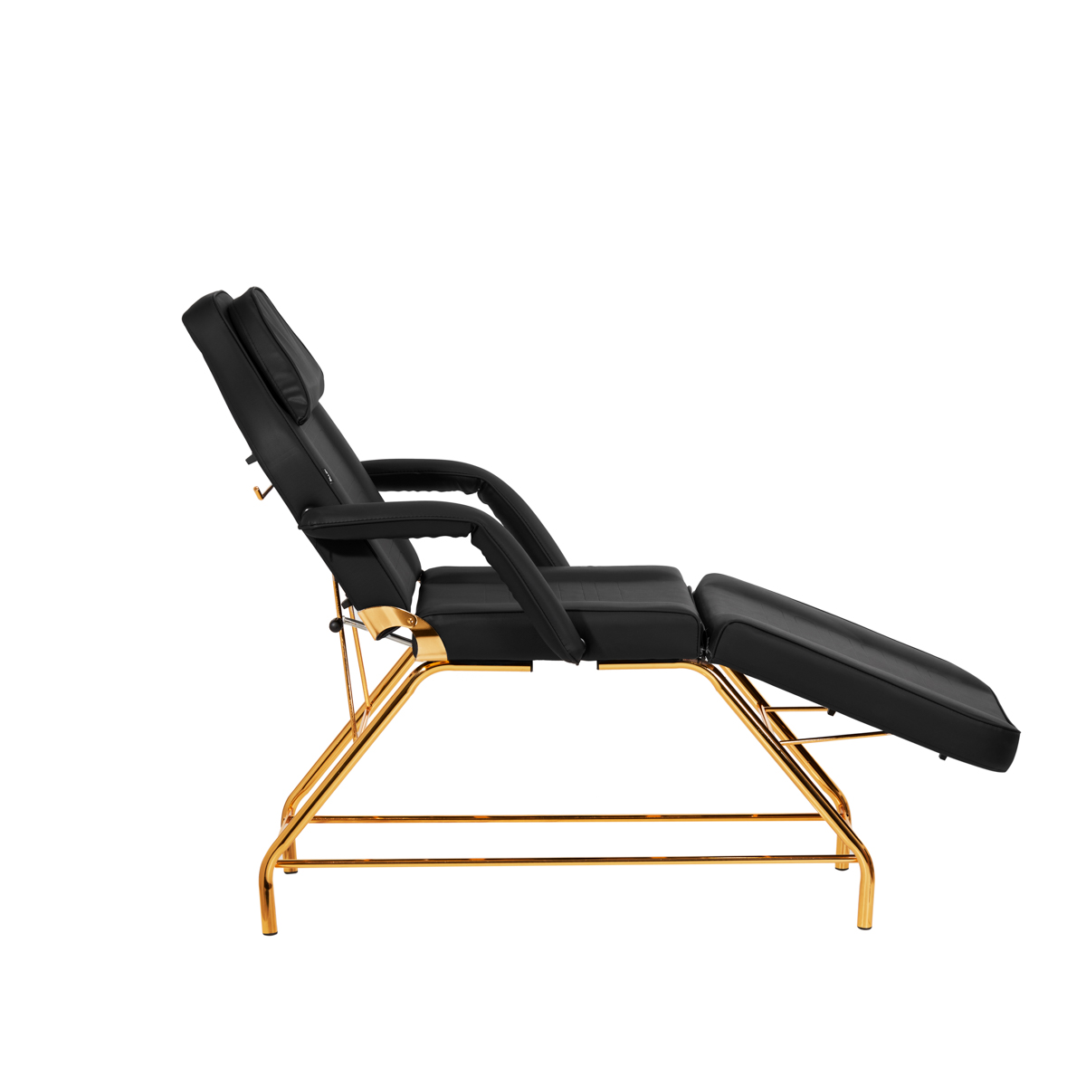 The Sillon 211 gold pro cosmetic chair is a practical piece of equipment that improves work in many specialized salons, including beauty, massage and tattoo salons. It will be suitable for those who are looking for a simple, functional and at the same time distinctive piece of cosmetic furniture.