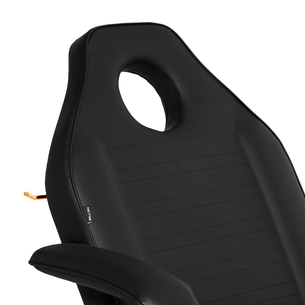 The armrests provide the user with adequate support and comfort during treatments. If necessary, they can be easily removed, allowing the practitioner easier access to the areas on which they are currently working. These elements, which are divided in half, are movable, so they fit well when changing the position of the backrest. Thanks to the opening in the headrest, which is hidden under a properly profiled pillow, the chair is also perfect for back treatments, such as massages.