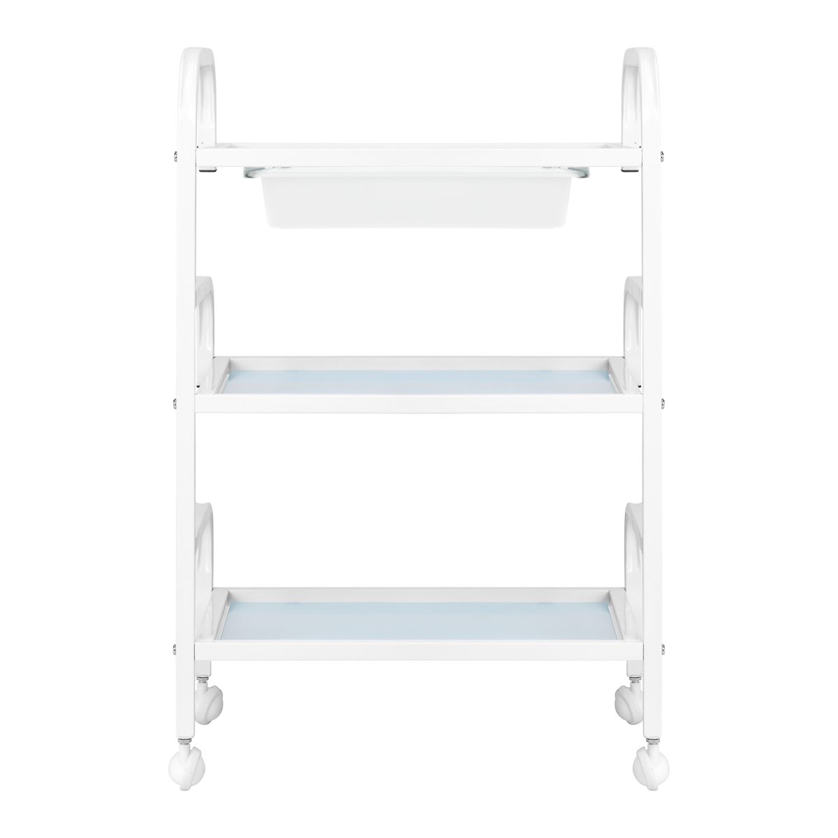 The cosmetic table Basic 121 is a functional piece of furniture that will work perfectly in any beauty salon or SPA. The lightweight construction makes daily work easier, while three glass shelves provide convenient storage of cosmetics, accessories and equipment. An additional tray under the top shelf allows quick access to the most frequently used tools. Minimalist design adds a professional character to the interior.