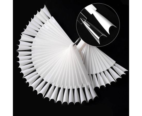 La palette da 50 punte è ideale anche per i colori degli smalti semipermanenti o classici. Con l'aiuto dell'anello si possono così modellare a ventaglio per una migliore visualizzazione dei modelli ungueali.