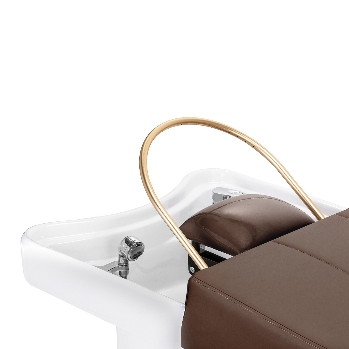 The golden arc with an adjustable angle of inclination, designed for the Waterfall Head SPA, is an innovative solution that allows for holistic care of the scalp. The water jets act as a natural massage, improving blood circulation, reducing tension and stress. The precisely controlled water flows support hair regeneration and intensively moisturise the skin. The waterfall arc with the possibility of adjusting the angle ensures deep cleansing of the scalp and relaxation, bringing relief from ailments such as headaches or stiff neck. Thanks to an intelligent closed-loop system, the arc draws water from the bowl and reuses it, providing an uninterrupted water massage. This is a combination of technology and relaxation that supports hair health and well-being.