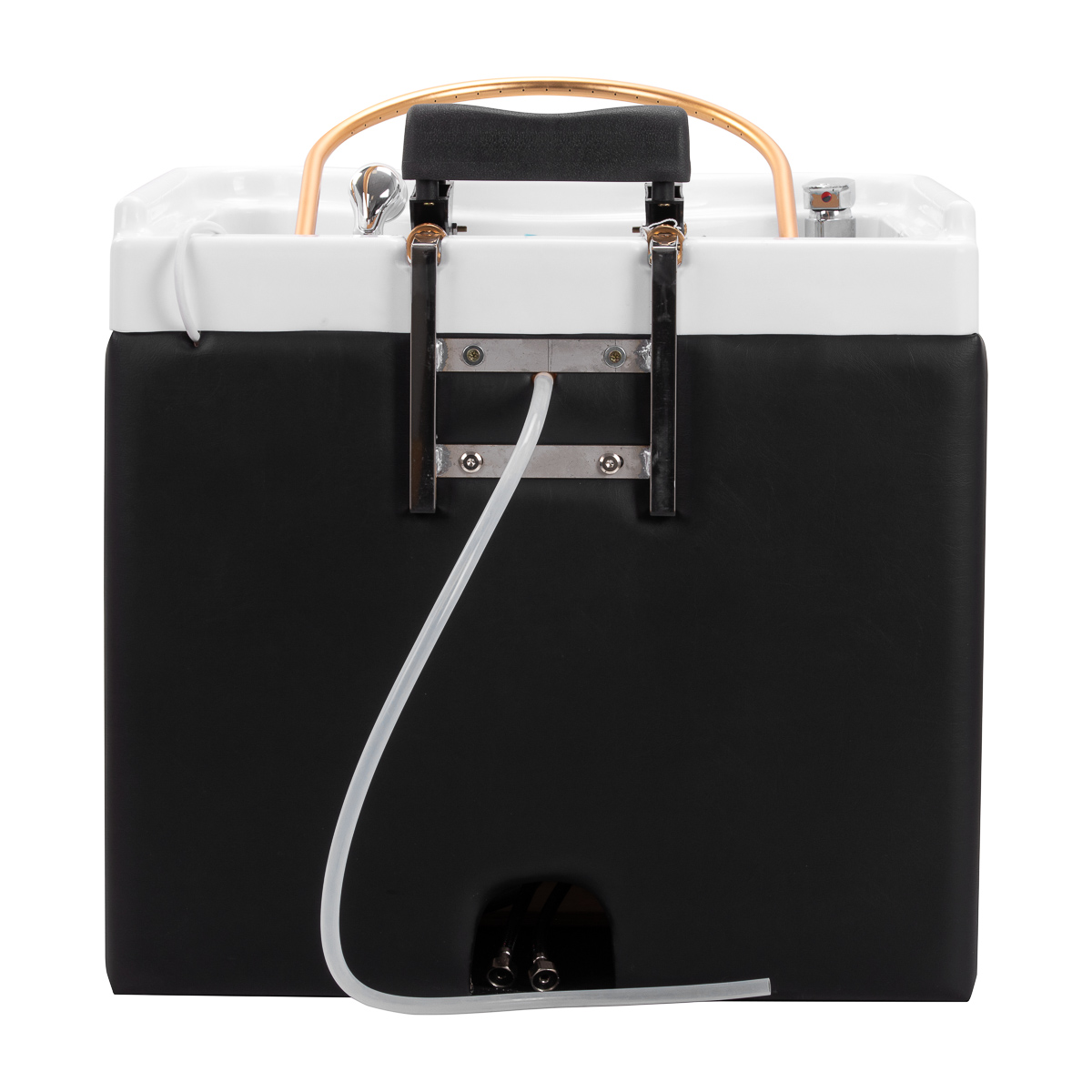 The deep bowl in elegant shades of white is designed for maximum comfort for both the client and the practitioner. Its design effectively prevents splashing of water and cosmetics, making it easier to keep the work area clean and tidy. The unique curve not only facilitates access for the person performing the service, but also adds an elegant, modern character to the washstand. A thoughtful combination of functionality and style that elevates the standard of any beauty & wellness space.