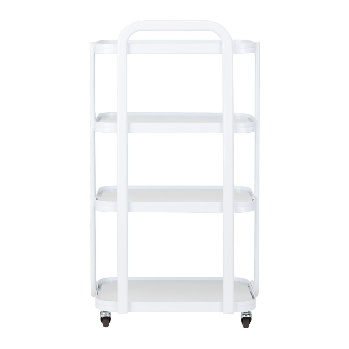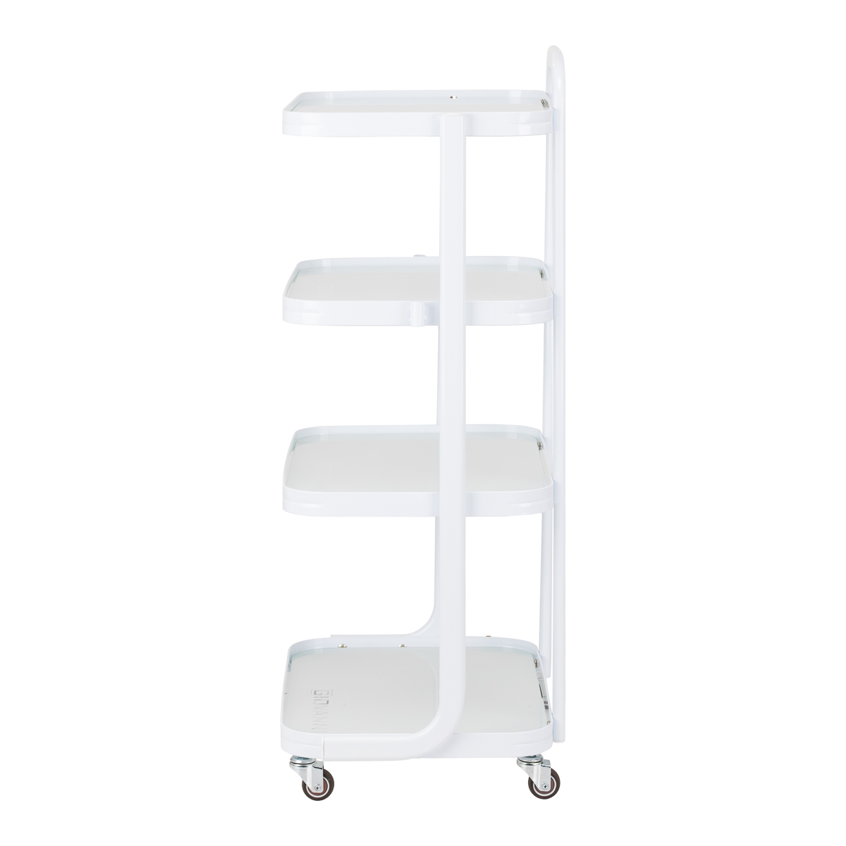 A simple design, a frame made of durable aluminum in the shades of white and glass shelves make the table both aesthetic and easy to keep clean. Four wheels allow easy rearrangement, which significantly facilitates work in the salon, and solid materials guarantee long term durability and stability. Elegant finishing adds to its unique appearance, enhancing the aesthetics of any interior.