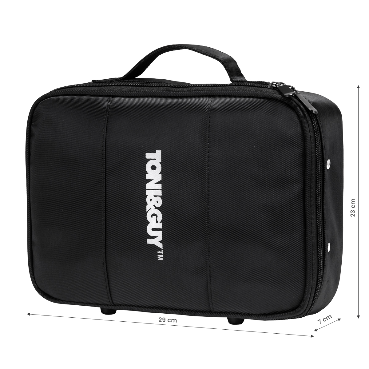 The case is extremely capacious, providing enough space for scissors, combs, brushes and other hairdressing accessories. The practical safety features in the interior ensure that the tools remain safe even during transport. The Toni&Guy case ensures that the most important tools are always within reach, and the solid handle makes it easy to carry. The use of high-quality materials ensures maximum durability and ease of cleaning.