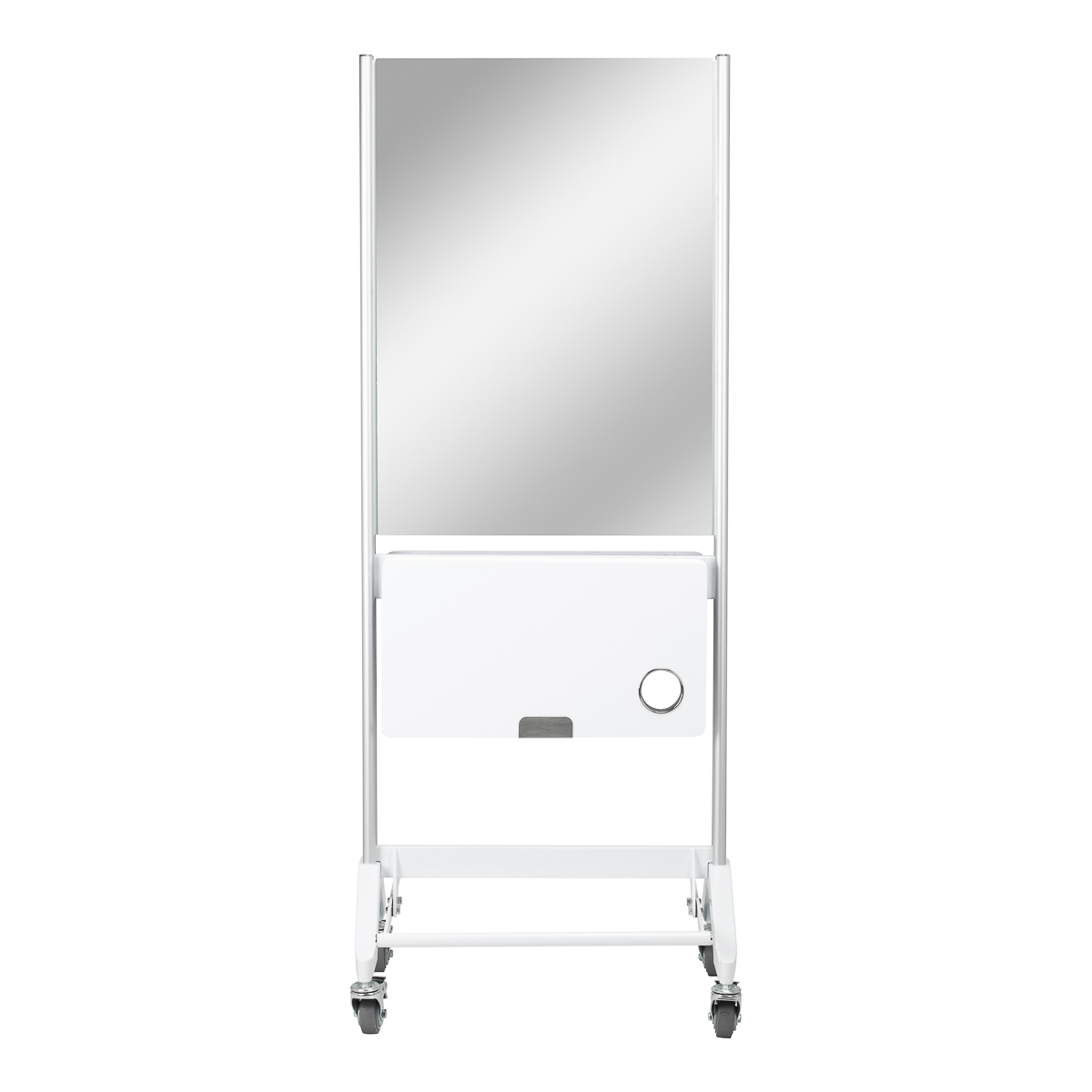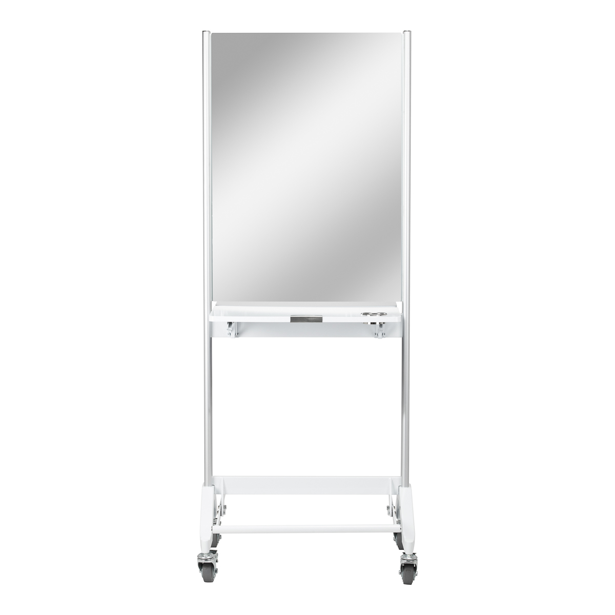 A practical folding shelf at a height of 90 cm is one of the main advantages of the MI-03 console, which saves space while offering functional storage space. In addition, the double-sided design and lockable casters provide mobility and ease of moving the console. Holes in the shelf serve as a holder for a hair dryer, making it even more practical and tailored to the needs of hairdressing professionals.