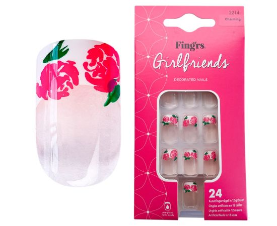 Tip unghie colore press-on, Girlfriends Decorated Nails, Charming, Fingrs, 24 pezzi