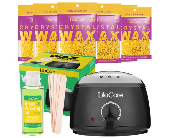 Kit ceretta brasiliana honey, cu scaldacera professionale, 10 x 100 g , scaldacera professionale, olio post depilazione, 10 pezzi spatole per ceretta