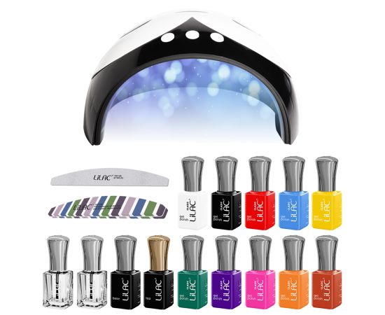 Kit smalto semipermanente Lilac, 14 smalto, Basic colors, Lampada LED unghie, lima unghie e buffer, kit unghie semipermanente