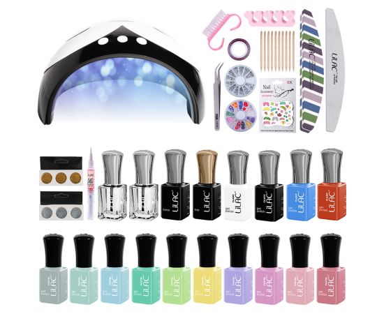 Kit smalto semipermanente Lilac, Smart 18 smalto + Lampada LED unghie + accessorio, kit unghie semipermanente Pastel colors