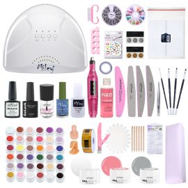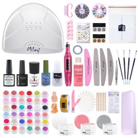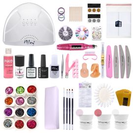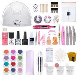 • Kit completo con gel costruttori, forme per unghie, lime, buffer e lampada UV/LED.