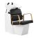The practical hair wash unit is equipped with a mixer faucet, which provides easy access to hot and cold water. This makes it easier to adjust the temperature to the customer's individual preferences. A dedicated place to hang up the handset makes work easier, and the chrome-plated plug with a special strainer allows you to control the water flow and maintain high hygiene standards in the salon. The water connection has been placed inside the base, allowing the pipes to be easily hidden. A significant advantage of this model is the opening left between the backrest and the seat, which makes it easier to keep the living room clean by allowing you to easily sweep dirt from every nook and cranny of the chair. The hair wash unit has been designed in such a way as to ensure comfort during various treatments, ensuring proper back support. The combination of functionality and amenities makes working in a hairdressing salon even more comfortable.