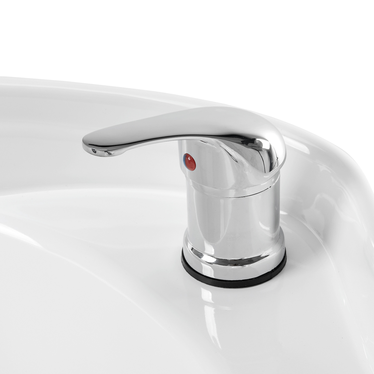The aesthetically pleasing ceramic washbasin bowl in shades of white has the appropriate depth, which prevents excessive splashing of water or specialized products used during treatments. This allows you to freely and effectively perform a wide range of services. The high-quality material used makes the washbasin durable, resistant to discoloration and scratches, and very easy to clean. The angle of the bowl can be adjusted, making it easy to adapt to individual needs. A properly profiled collar and inclined backrest provide support and comfort during hair washing, and thanks to the comfortable black plastic cover, the customer will not feel the unpleasantness of the cold ceramic surface.
