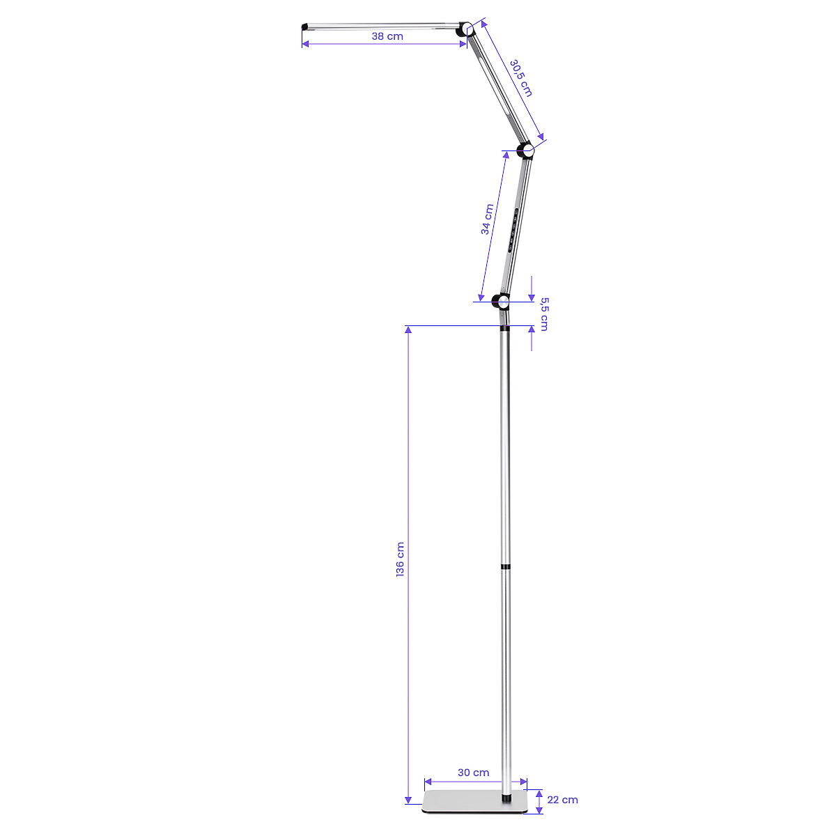 With its simple aluminium form in a silver polished finish, the lamp impresses with a futuristic look, which will perfectly fit into almost any interior. Thanks to the vice-like handle, it can be easily and stably mounted to a tabletop, and the 135 cm high tripod ensures appropriate functionality. The smooth surface of the lamp makes it exceptionally easy to keep clean, eliminating problems with hard-to-reach elements.