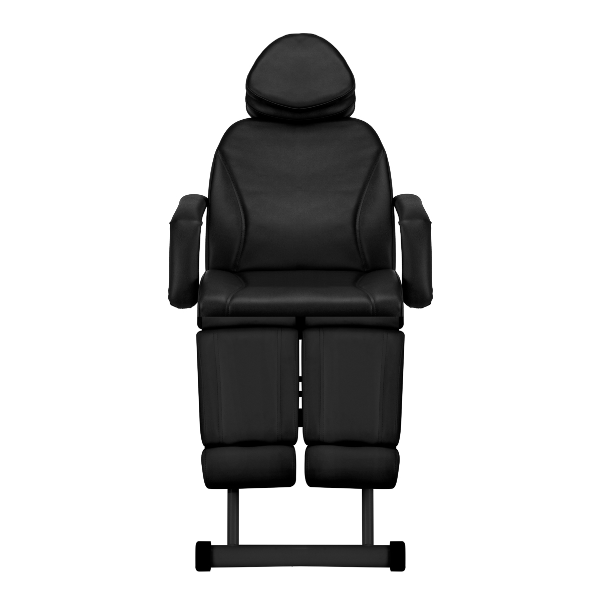 The opening in the headrest hidden under a properly profiled pillow makes the chair perfect for both facial and body treatments. Stable armrests guarantee the user adequate support. These elements, divided in half, are movable, so they fit well when changing the position of the backrest, and can also be easily removed, making it easy to take a seat.