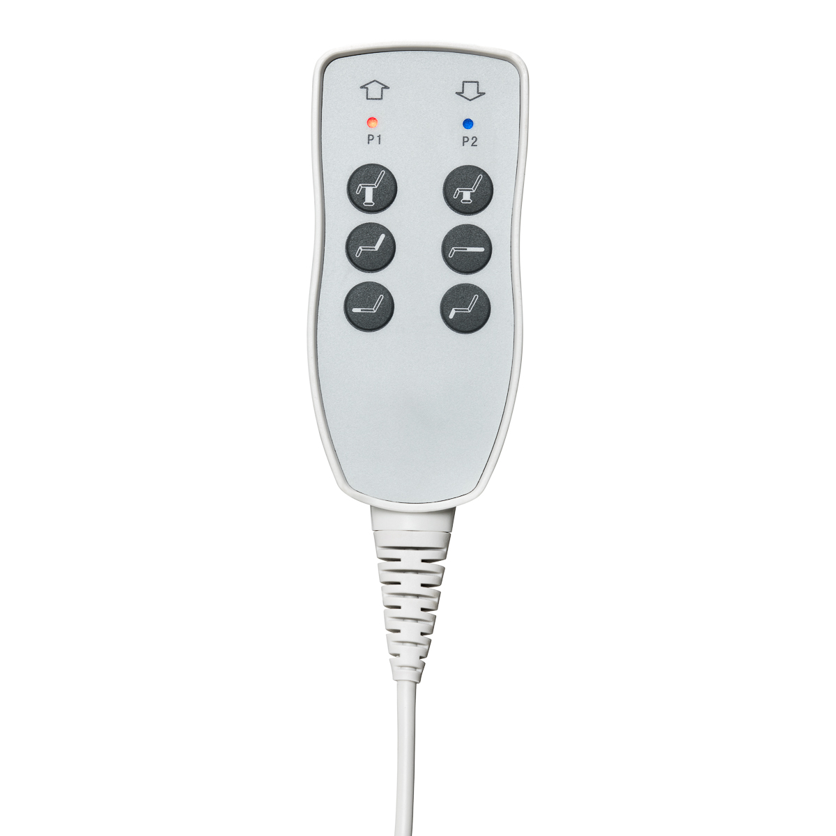 The seat height is adjustable from 61 cm to 92 cm, and when fully extended, the chair reaches a length of 190 cm. These dimensions allow the equipment to be easily used by people of different heights and enable it to be adapted to the needs of both the client and the person performing the procedure. The handles located on both sides of the seat allow you to hang the remote control freely so that it is always at hand.