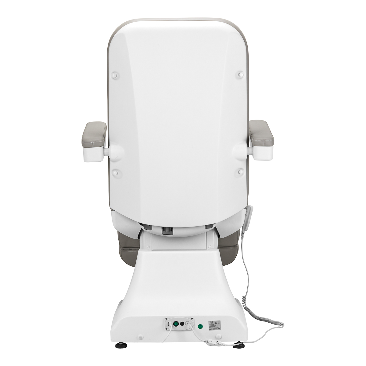 Using a simple, intuitive remote control, the chair can be smoothly adjusted in three planes – it has adjustable seat height and backrest and footrest angles. This allows you to freely set the position appropriate to the procedure being performed at a given moment, which affects the comfort of both the user and the person performing the service. The dimensions and width of the adjustment allow the equipment to be easily used by people of different heights and make it easier to adapt it to the needs of both the client and the person performing the treatment.