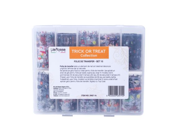 La qualità è l'elemento più importante che apprezziamo. Pertanto, il prodotto Lila Rossa Transfer foil 10 pezzi Trick or Treat Collection 16 viene fabbricato e conservato secondo standard elevati. È perfetto per la TUA manicure!