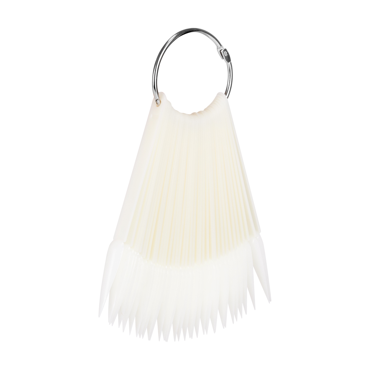 The nail stencil in a milky color allows you to aesthetically present all colors of classic and hybrid varnishes or gels. It consists of 50 individual tips with a pointed shape. It is fastened with a practical, detachable wheel, which makes it easy to store the whole thing. Each tip is made of durable plastic.