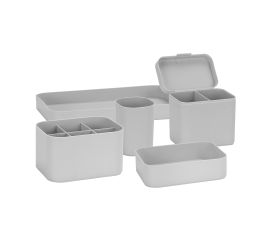 Easy organization The five-piece set of storage containers will allow you to organize all of the accessories and instruments needed in professional beauty or hairdressing salons. It will also be perfect for home use. The plastic containers are easy to keep clean . The neutral gray...