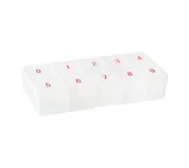 A practical organizer with ten numbered compartments will allow you to organize small accessories for nail styling or eyelash extensions. Different-sized containers give you the opportunity to store decorations and nail tips of various sizes. The box will also work well for holding small...