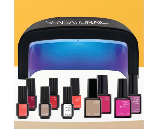 Non riesci a trovare Kit smalto semipermanente 10 pezzi + lampada per unghie a led/UV + set modelli unghi Sensationail nel negozio di unghie più vicino a te ?