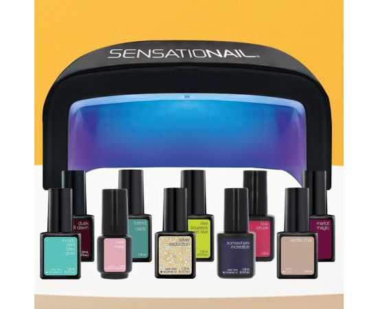 Gli appassionati di Kit semipermanente unghie possono ordinare Kit smalto semipermanente 10 pezzi + lampada per unghie a led/UV + set modelli unghi Sensationail a qualsiasi ora del giorno e della notte
