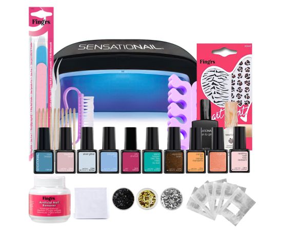 Non riesci a trovare Kit smalto semipermanente 10 pezzi + lampada per unghie a led/UV + set modelli unghi Sensationail nel negozio di unghie più vicino a te ?