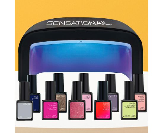 Non riesci a trovare Kit smalto semipermanente 10 pezzi + lampada per unghie a led/UV + set modelli unghi Sensationail nel negozio di unghie più vicino a te ?