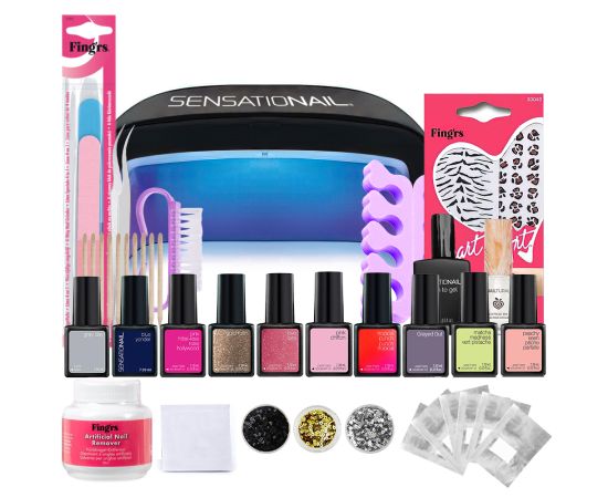 Kit smalto semipermanente 10 pezzi + lampada per unghie a led/UV + set modelli unghi Sensationail