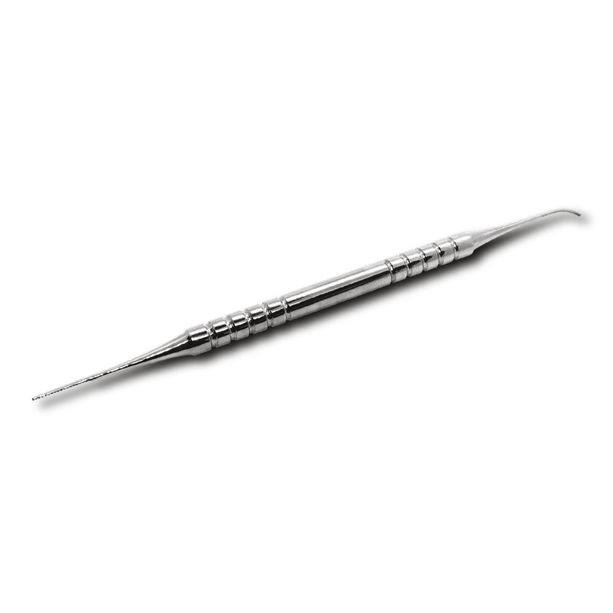 The angled file is designed for leveling the edge of the nail or its reconstruction. It is even suitable for leveling ingrown nails in hard-to-reach areas. In addition, the file can be used for the application of adhesive clamps. The tool has two different tips - one straight and the other slightly rounded. The file has a very comfortable handle and a practical compact size. The product is made of high-quality stainless steel and is suitable for autoclave sterilization.