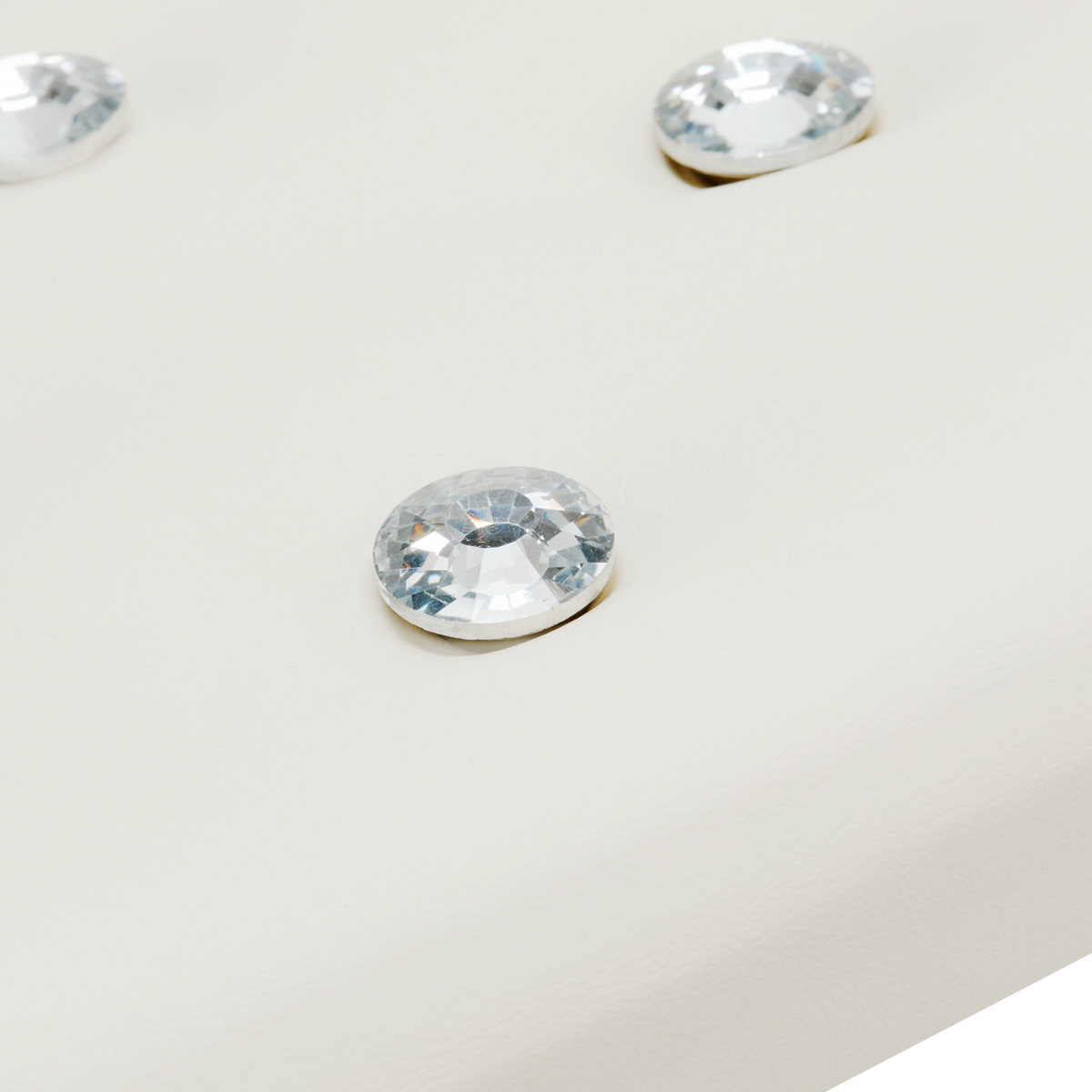 The appropriate height of the support ensures a comfortable position for both the client and the stylist. The correct posture of the stylist minimizes strain on the spine, effectively reducing back pain, while the client enjoys greater comfort and relaxation. Silicone elements on the legs protect the tabletop against scratches and prevent it from sliding on the table, ensuring stability. The plastic frame and easy-to-clean synthetic leather ensure the product's long durability, and decorative crystals give it a unique look.