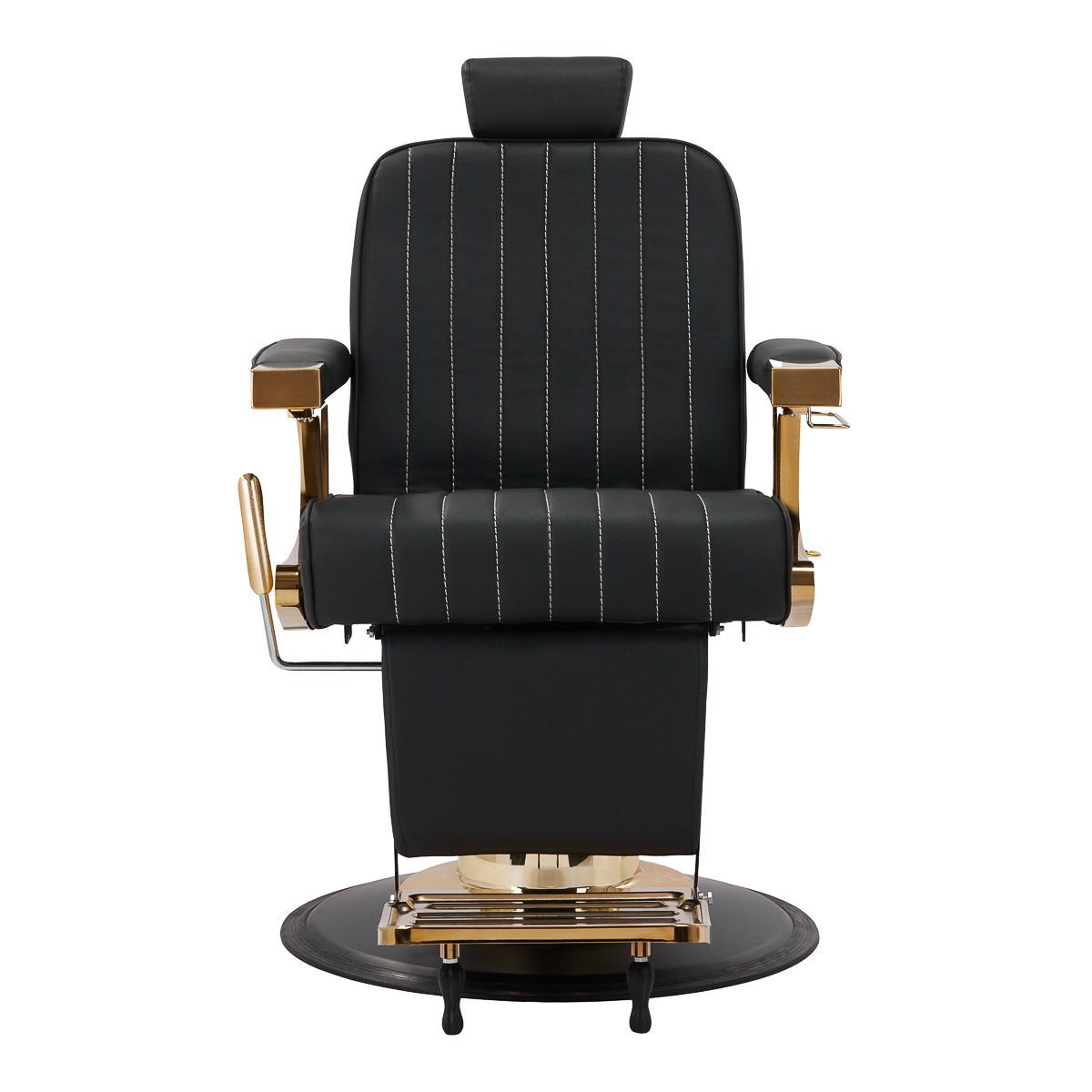 The solid, wide base construction ensures stability and, consequently, high comfort of use. Filling with durable, deformation-resistant foam and upholstery made of pleasant-to-touch synthetic leather ensure the durability of the furniture and its comfortable use for a long time. They also make the equipment resistant to moisture, durable and easy to clean. Covering in shades of black with aesthetic stitching gives it a unique character. Designer polished decorative elements, referring to the vintage style, will perfectly fit the atmosphere of barbershops, creating their amazing atmosphere.